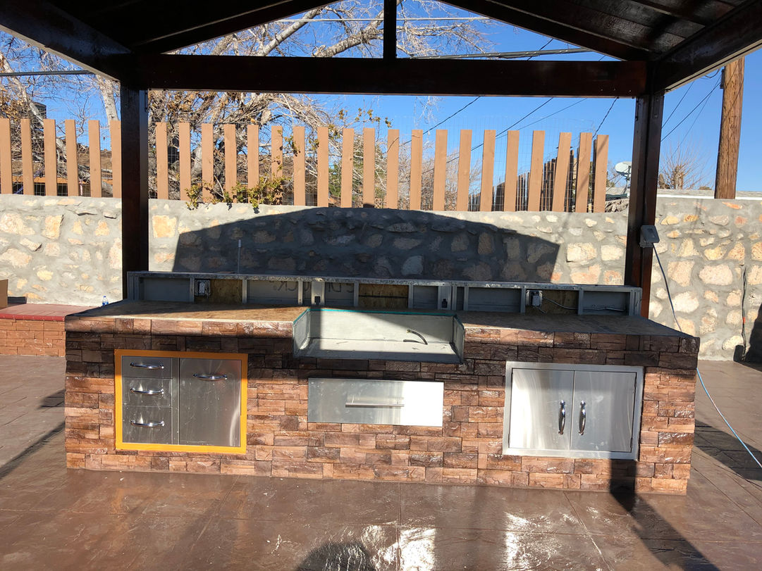 Black Diamond Contractors completed a custom outdoor kitchen project featuring a built-in grill, stone veneer cabinetry, stainless steel storage, and granite countertops. The design provides both style and functionality, creating the perfect space for outdoor cooking and entertaining. With durable materials and expert craftsmanship, this outdoor kitchen was built to withstand the elements while enhancing the homeowner’s backyard experience.